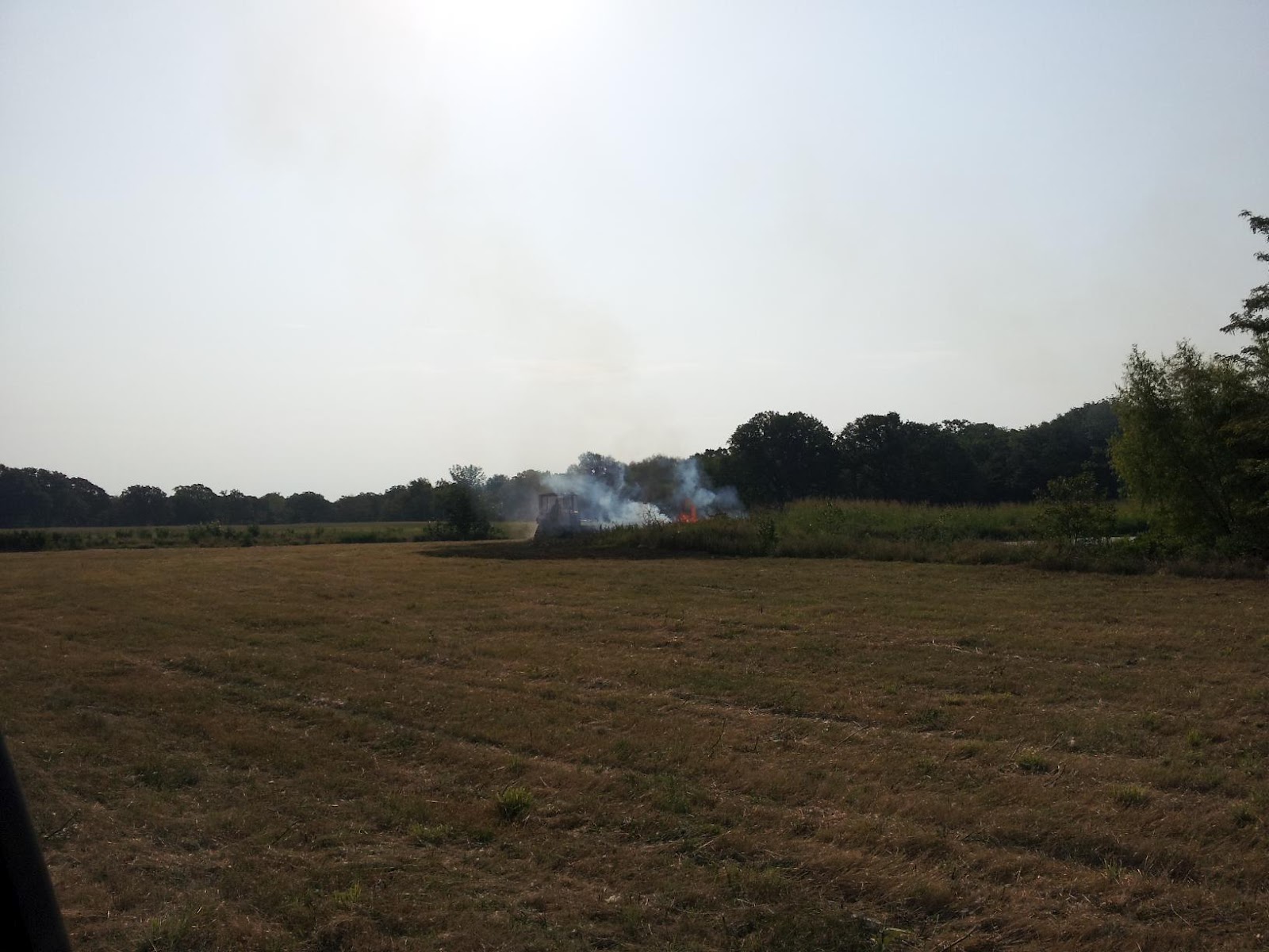 At 5:30 am six volunteer firemen showed up with a huge firetruck to help me burn five piles of trees. Later that morning we called in a bulldozer to help. It was all going well until the freak thunderstorm came through. Crap!